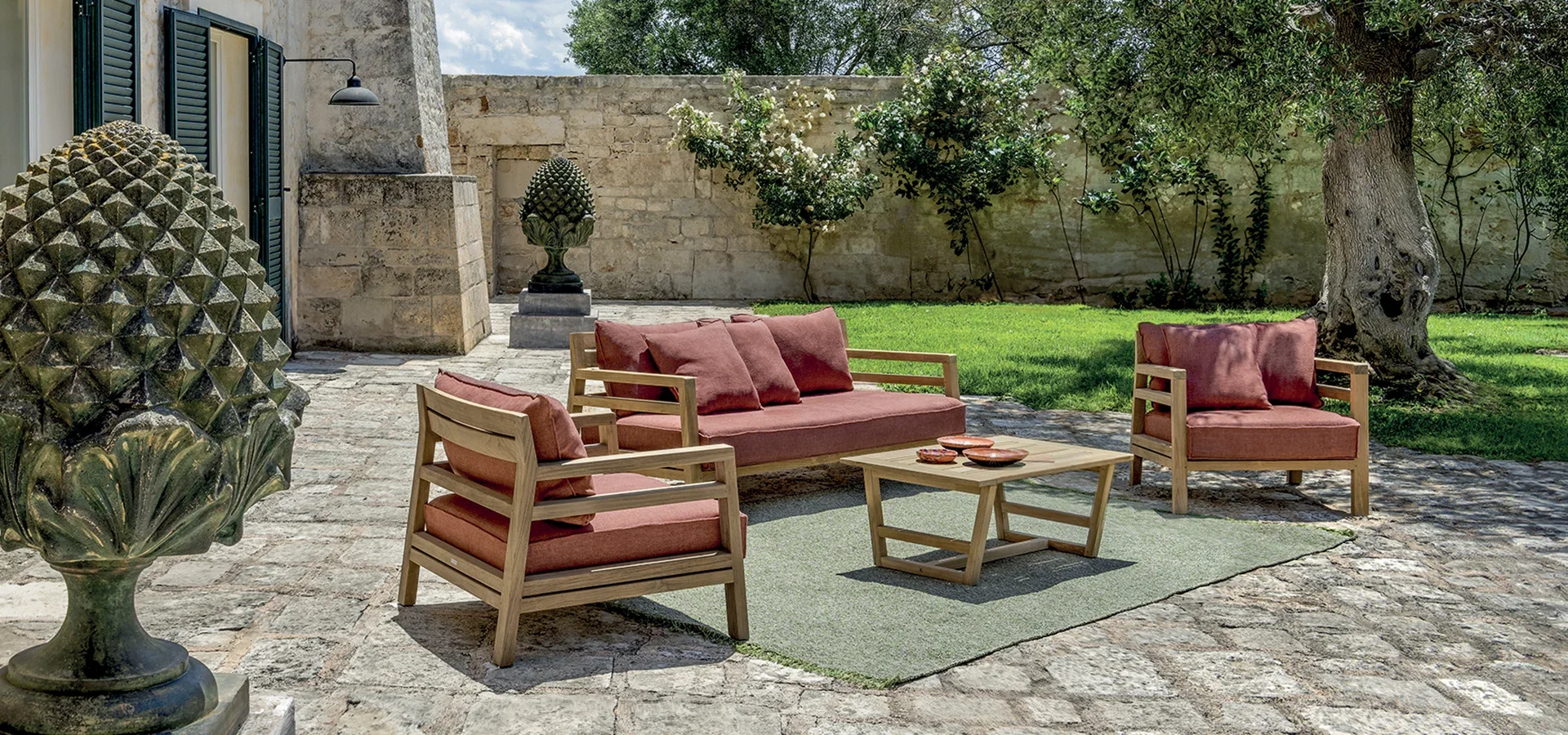 Outdoor living with respect for the environment – this is one of the principles that the entire production is based on. The conscious decision to pay constant attention to the quality of the materials and respect for the natural environment that creates them.