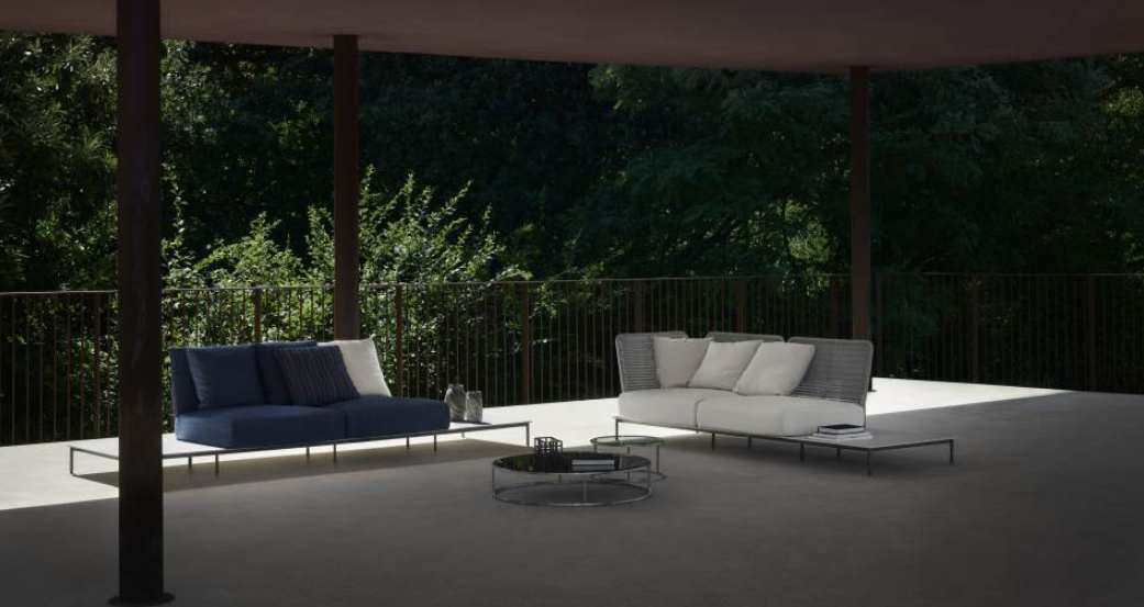 The modularity of Extrasoft allows to customize with class even the outdoor areas through endless compositions.